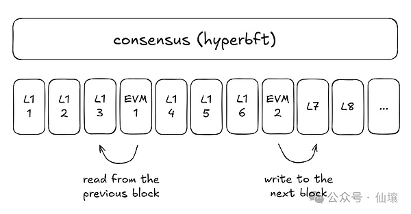 總結來看,HyperEVM類似于基于HyperliquidL1的二層,HyperEVM依賴于預編譯代碼讀取L1狀態,也依賴于Events來與HyperL1產生交互。L1也存在一些系統合約幫助用戶在HyperEVM內觸發交易,或是進行資產跨鏈。但與一般的Layer1——Layer2架構不同,Hyperliquid為HyperEVM提供了更高的互操作性。