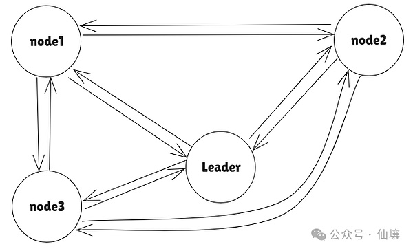下圖展示了在非并行情況下的HyperBFT共識的消息傳遞方式,可以看到,所有的消息被Leader匯總并統一廣播,免去了節點之間自行交換消息的步驟,大幅降低了復雜度。