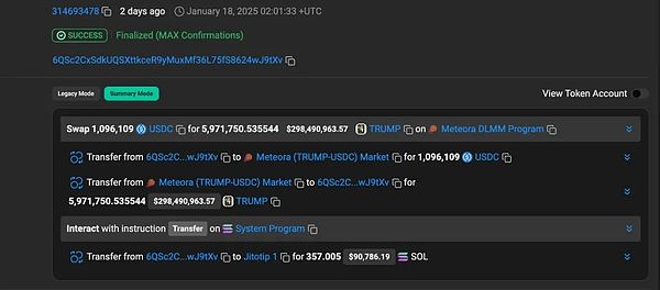 22:27-官方流動性地址開始注入流動性,注入100,000,000TRUMP(占總Tokens比10%)