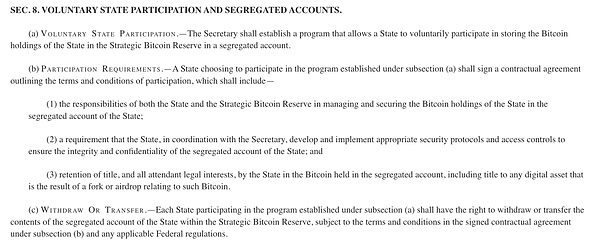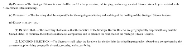 明確指出國(guó)家與戰(zhàn)略Bitcoin儲(chǔ)備機(jī)構(gòu)在管理和保護(hù)國(guó)家獨(dú)立賬戶中Bitcoin持有量方面的具體職責(zé)和義務(wù);