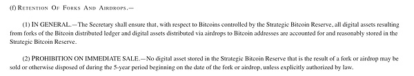 協(xié)議還應(yīng)明確指出,盡管Bitcoin資產(chǎn)被存儲(chǔ)在戰(zhàn)略Bitcoin儲(chǔ)備的獨(dú)立賬戶中,國(guó)家依然保留對(duì)這些隔離賬戶中所持有的Bitcoin的所有權(quán)及相關(guān)法律權(quán)益。這包括了因Bitcoin網(wǎng)絡(luò)發(fā)生分叉或空投事件而產(chǎn)生的任何新的數(shù)字資產(chǎn)的所有權(quán)。