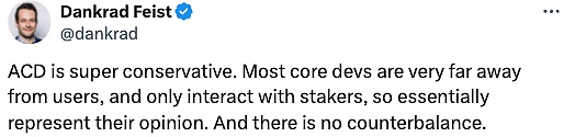 dba聯(lián)合創(chuàng)始人JonCharbonneau在去年年末發(fā)表了一篇名為《Etherum’sNorthStar》的文章,指出Ethereum缺乏明確的「北極星」目標(biāo)。Jon在早前的推文也指出,連Ethereum內(nèi)部也無(wú)法就其核心產(chǎn)品達(dá)成一致。