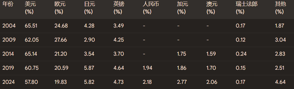 除了石油美元體系,美元作為全球主要的儲備貨幣也進一步鞏固了其霸權地位。各國央行為了應對國際收支平衡、干預外匯市場以及作為國家財富的儲存,都需要持有一定數量的外匯儲備。由于美國經濟體量龐大、金融市場發達且具有相對的穩定性,美元自然而然地成為了各國央行的首選儲備貨幣。
