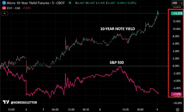 然而隨著波動性加劇導致基差交易平倉,10年期收益率暴漲65個基點至4.50%。