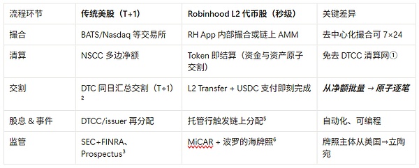 RobinhoodL2:鏈上Tokens轉移即視為資金與資產的原子交割,直接完成清算,不再依賴DTCC的批量流程。