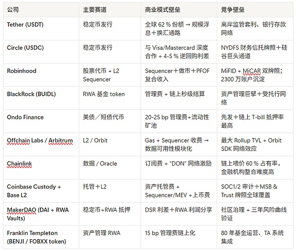 拆股、股息派發與回購可完全鏈上化,平臺按1–5bp收取服務費。以S&P500每年大約5%的股息率為例,若自動分發環節收取2bp手續費,年收入就可能達到數十億美元級別。護城河框架(“鐵三角”+“軟三鏈”)