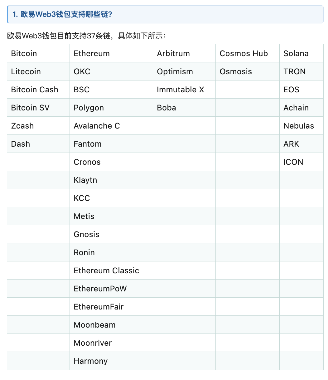 1. 歐易Web3錢包支持哪些鏈?
