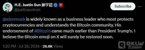 TRON創(chuàng)始人呼吁馬斯克恢復(fù)比特幣標(biāo)簽表情符號