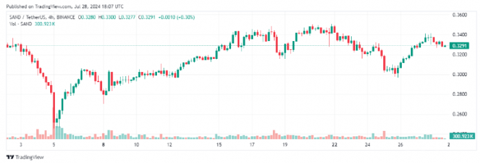 另一種備受關注的crypto是沙盒(SAND)。與MANA類似,SAND的價格在2021年11月達到了峰值,超過7美元。截至目前,SAND的價格為0.31美元,較其ATH下跌了95%。