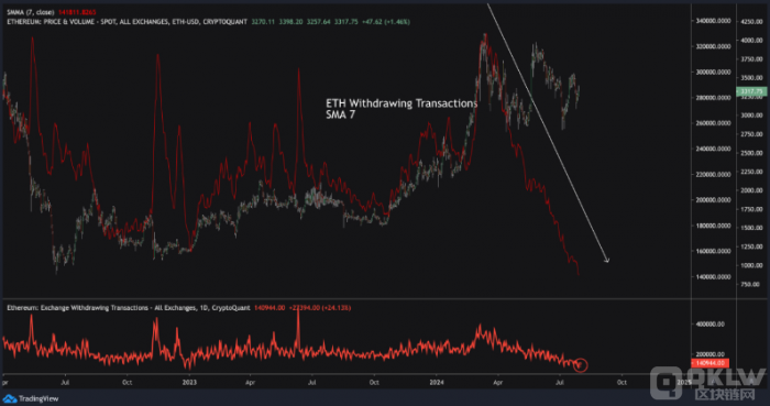獨立分析師Crypto Lion指出,自3月份以來,Ethereum在交易所的提款數(shù)量大幅減少,這一指標(biāo)與價格高度相關(guān)。這表明市場對ETH的需求并不高。