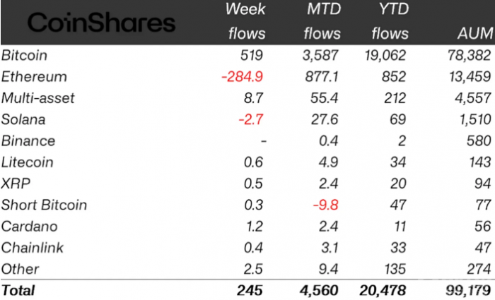 同時,基于Ethereum的投資基金(包括美國的ETF)每周流入2.85億美元。